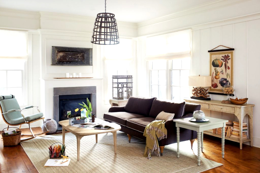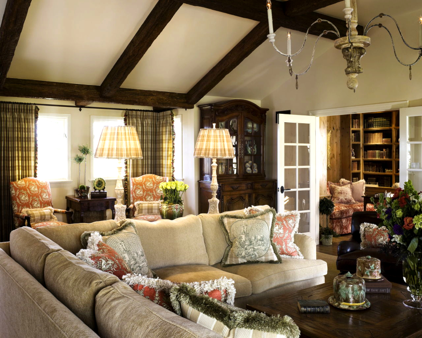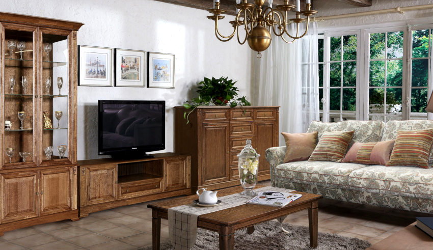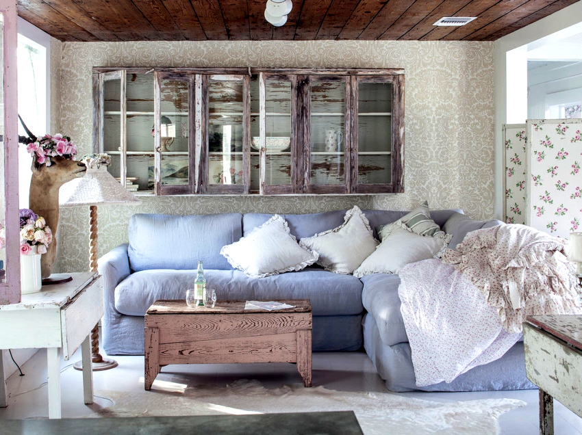 It will be possible to decorate an authentic room with the help of antiquity decorative elements in the form of candlesticks, porcelain figurines, painted wall plates, and carved photo frames. Artistic items are capable of emphasizing rural charm.