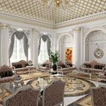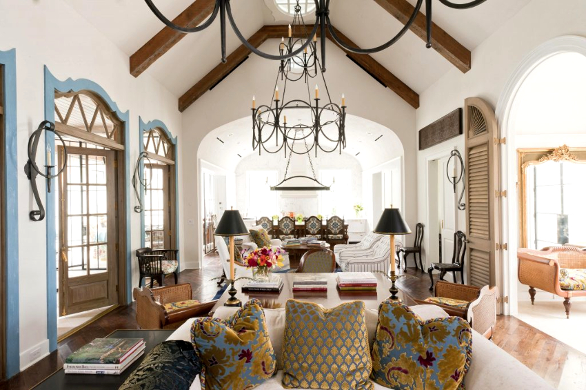 The ceiling should be light. On a perfectly flat surface, stucco molding can be located in the center of the chandelier or an ornate plaster pattern that frames the ceiling around the perimeter.