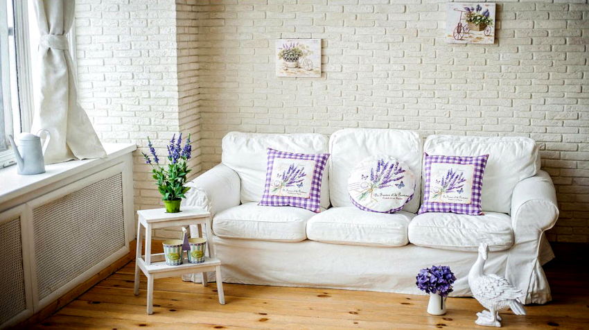 Helpful advice! A characteristic addition to the design of the living room in the Provence style will be compositions of lavender in a live or dried form.