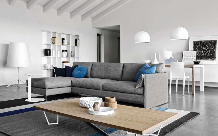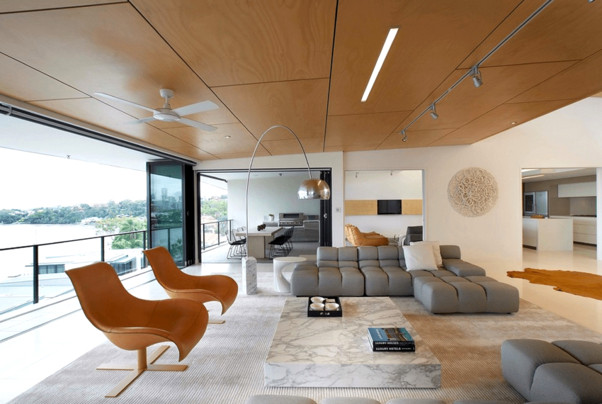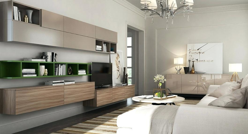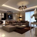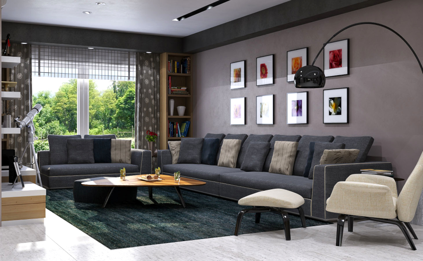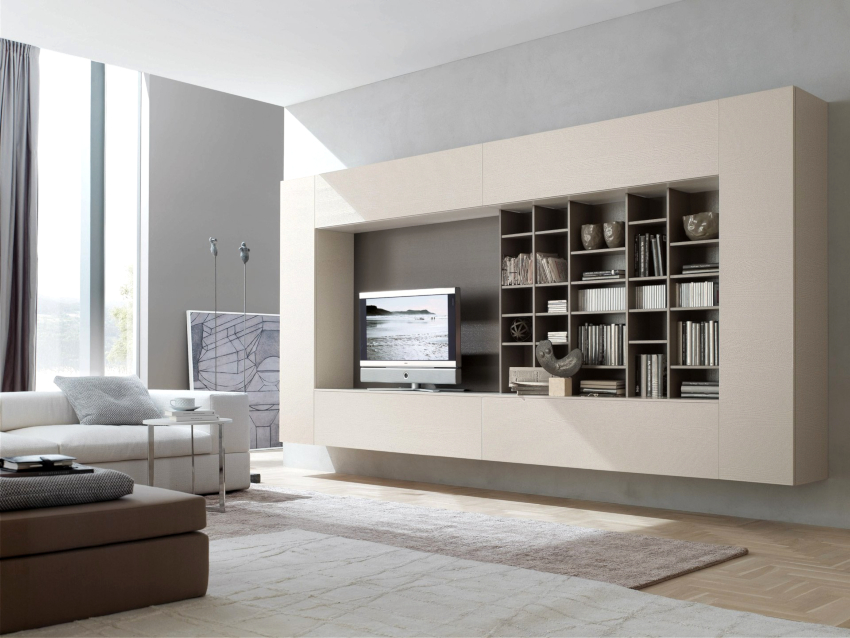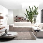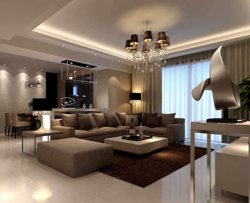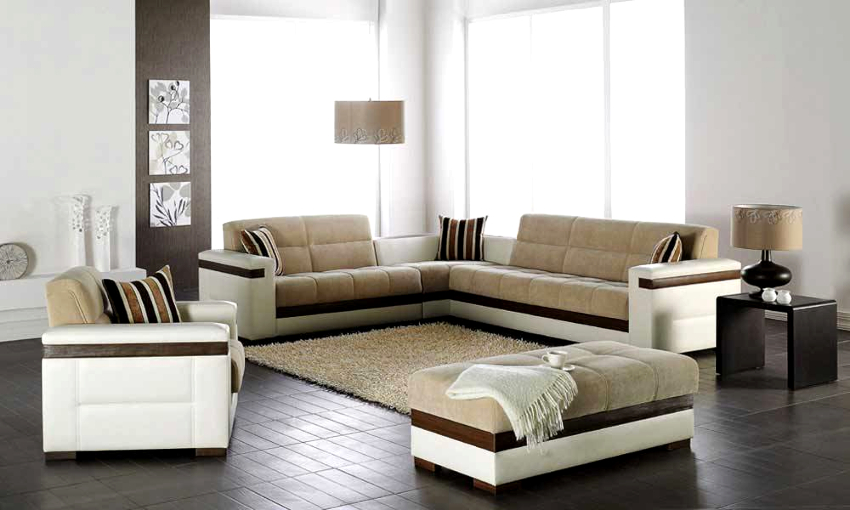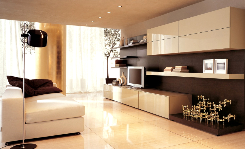 The modern living room should have modular multifunctional furniture, devoid of sharp corners. As interior elements, models are purchased with soft and rounded backs, armrests, selected several tones lighter than the background of the room.