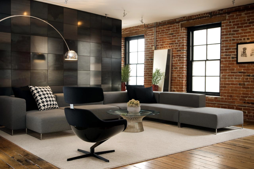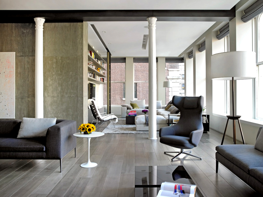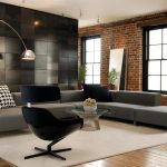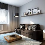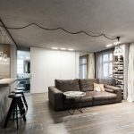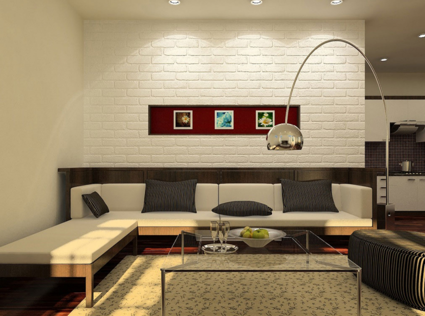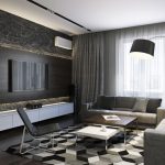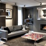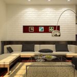 When decorating a room, the leading place is given to white and gray colors. Black undertones are often used to delimit space. You can add sunshine to your living room with soft cream tones. All natural shades and textures of wood, stone and brick fit harmoniously into the interior of the hall (photos clearly reflect this). The preference is given to the dark brown color, which manifests itself in furniture, flooring, decorative inserts on the walls.
