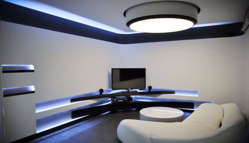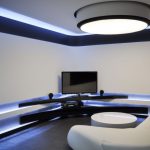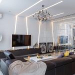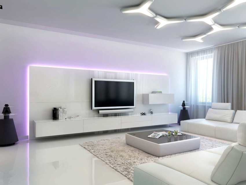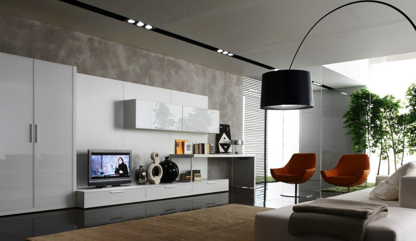 A modern, ultra-fashionable stylistic direction cannot be confused with another style. The room should contain a minimum number of items that are distinguished by straight, strict lines and a simple but modern design. Metal, plastic and glass are used in the design of the living room. In a high-tech room, you cannot do without modern high-tech technology.