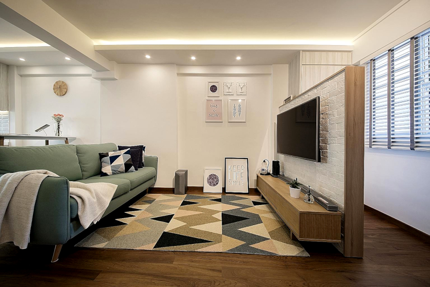 The eco-trend for a minimalist living room is the use of green as the main natural shade. Olive and mint tones are suitable as a background. You can create an accent with a rich herbal color.