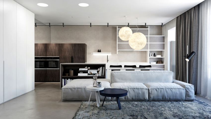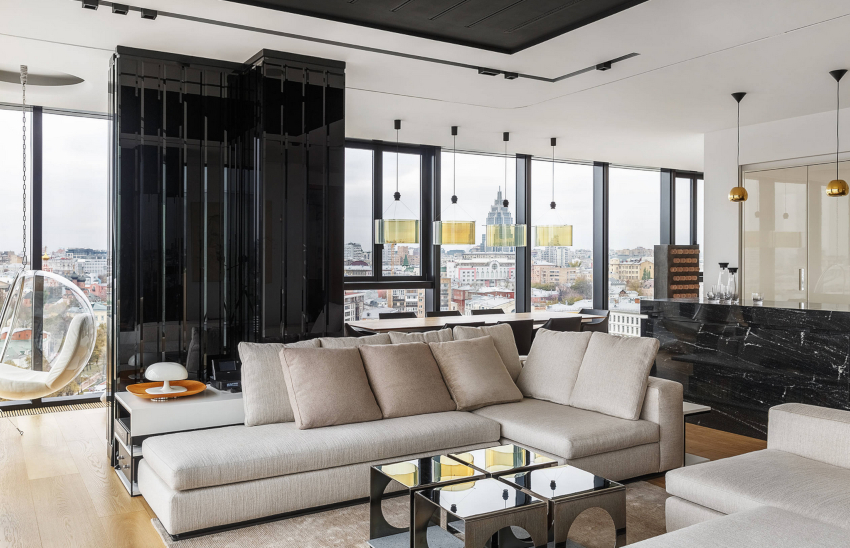 Beautiful design of a living room in an apartment in modern style
