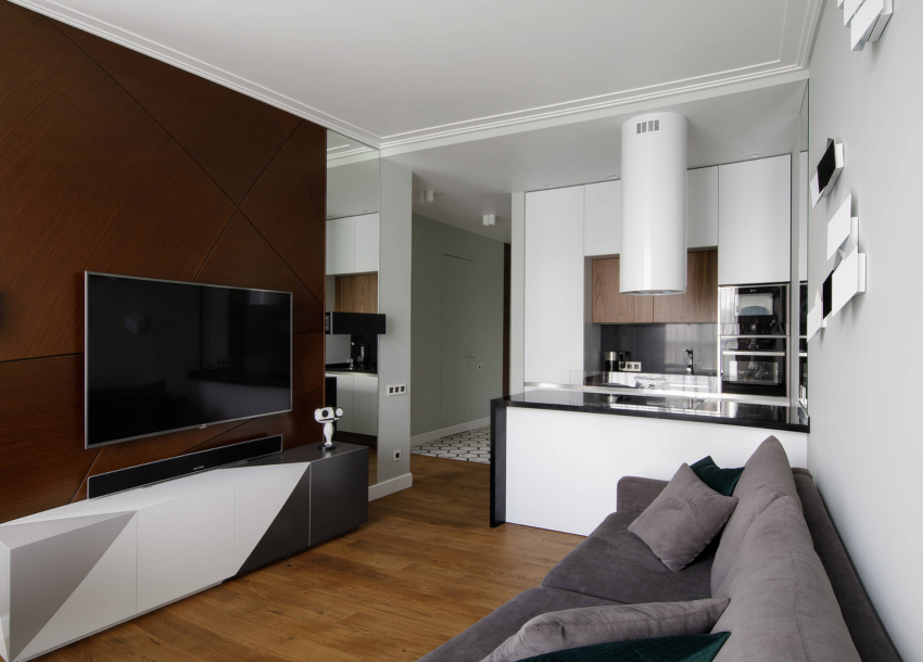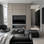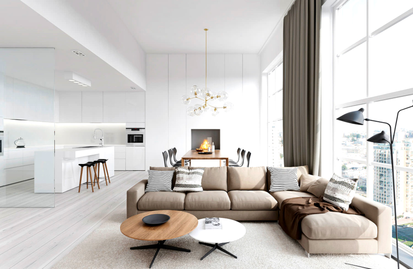 The minimalism style is very popular in the design of the hall. The living room is made in a light color palette. The premises are characterized by modern multifunctional furniture, clear geometry, strict lines, simple shapes, the absence of meaningless decor, and an abundance of light. The minimalist living room is the embodiment of practicality and comfort.