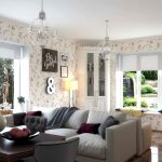 An interesting design solution is the gluing of roll coverings with various patterns that should be in harmony with each other. The ideal tandem for an Art Nouveau living room is a combination of discreet floral curls with simple geometric lines made in the same color scheme.