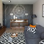 There are practically no decorative elements in a minimalist living room. It is allowed to use several large elements reminiscent of the eastern roots of the style. The same applies to textiles. It will be enough to lay a few solid pillows on the sofa. In the case of using a bedspread, preference is given to simple inconspicuous products.