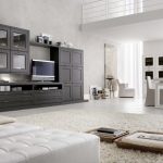 Cabinet furniture for a living room in the style of minimalism should have flat, laconic facades, glossy, polished and lacquered surfaces, metal fittings, glass inserts. It is necessary that all elements are made in a strict geometric form. Preference is given to rectangular models. The multi-tiered furniture with built-in drawers and niches organically fits into the minimalism of the living room. Ideal for the interior of the living room, a sofa that converts when folded into a wardrobe, a folding table, a pedestal chair. For soft upholstery, leather or smooth fabric texture in restrained colors is used.