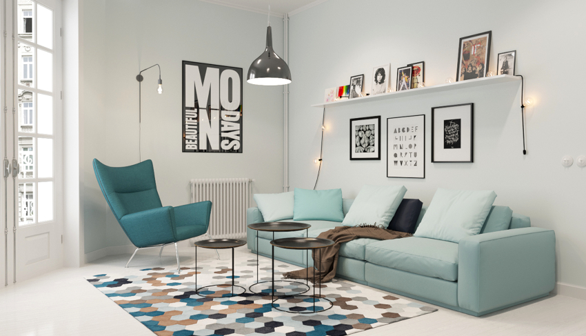 Helpful advice! A finishing touch can be achieved by using a repeating accent motif on cushions or narrow borders around the perimeter of the room.