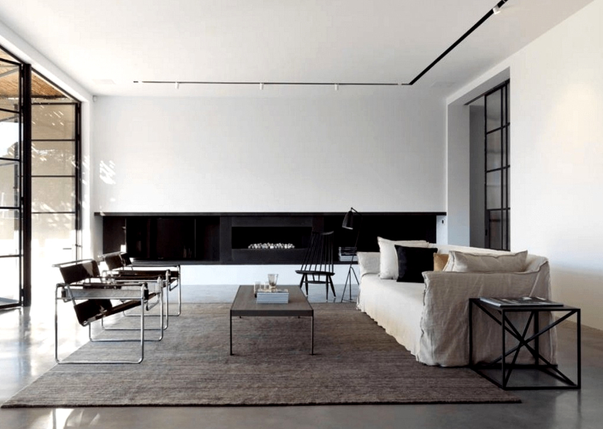Important! Carpet is uncommon for minimalism, but you can lay a small rug in the seating area.