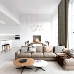 The modern living room will look restrained, strict, but practical and modern. The trend is characterized by tenderness and aesthetics, which is reflected in a calm natural color palette, diluted with bright accents. The design project of the interior of the living room in the Art Nouveau style involves the use of original forms of elements of modular furniture, muted glossy surfaces, bright lighting, the presence of natural materials in the form of wood, metal, stone, glass and crystal, the absence of bulky decorative elements.