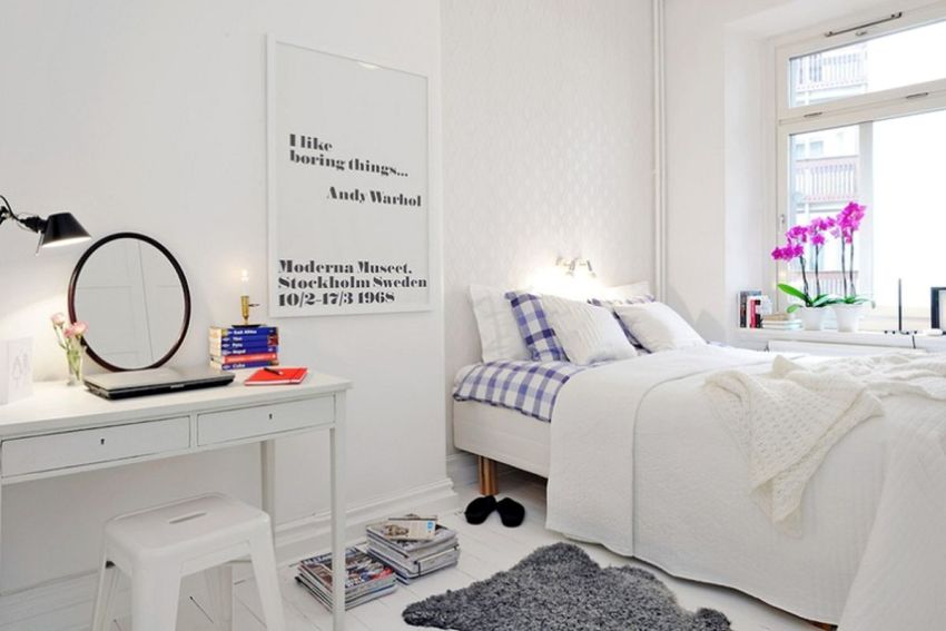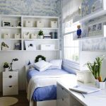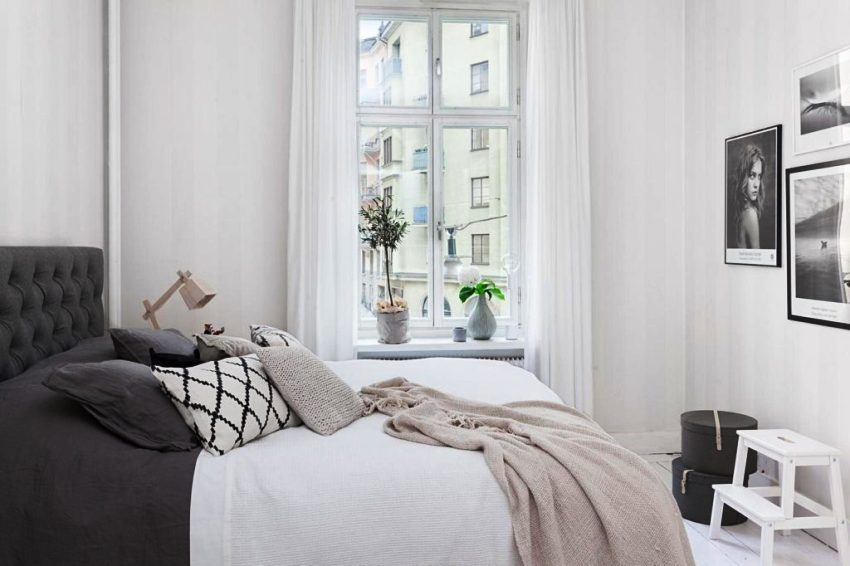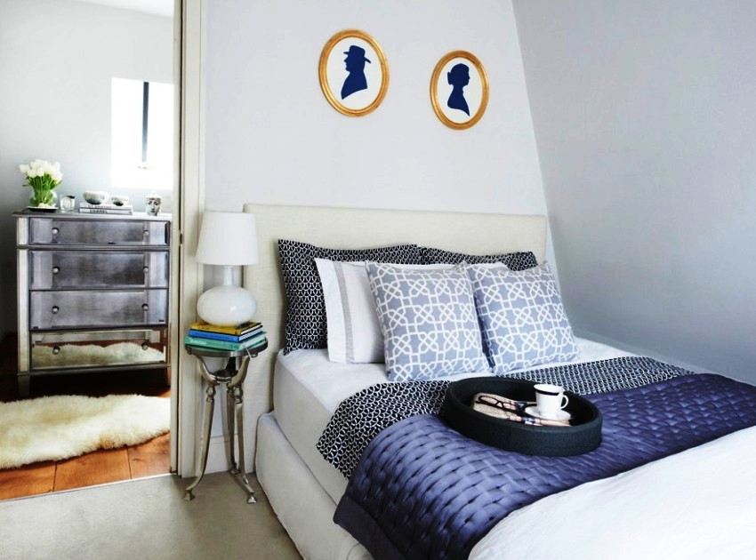 - Scandinavian. A modest option that prefers a simple white finish, the presence of wooden furniture. A soft blue bedspread on the bed will become a decoration.