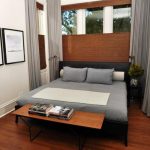 A good option to visually expand the space is to install a mirror or mirror cabinet. The main thing is not to place it in front of the cabinet, the best location is opposite the window, which, thanks to the mirror effect, visually increases. It should be noted that not all designers welcome the installation of a mirror in the bedroom.