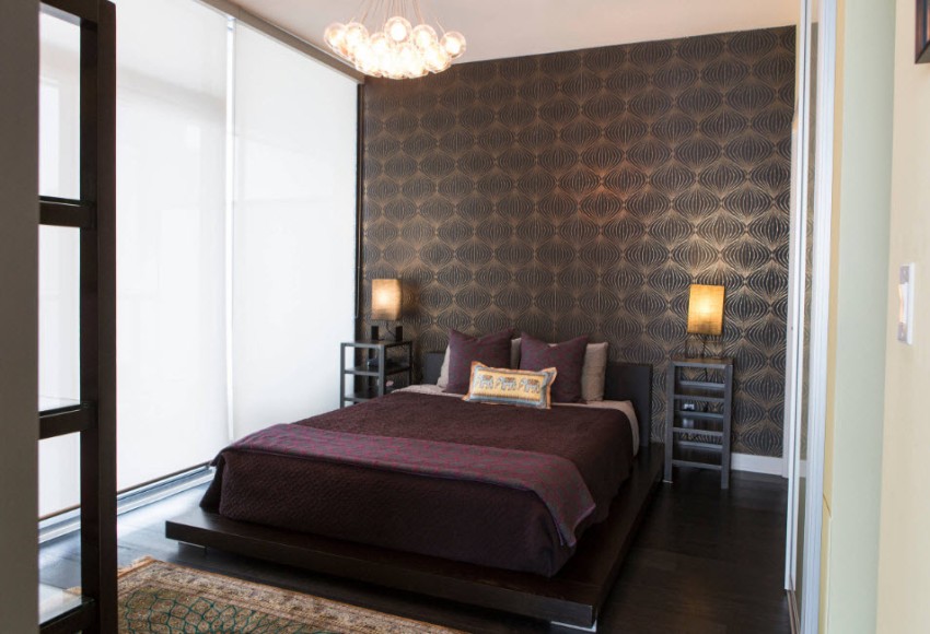 Various wallpaper options are usually used to decorate the walls in the bedroom: