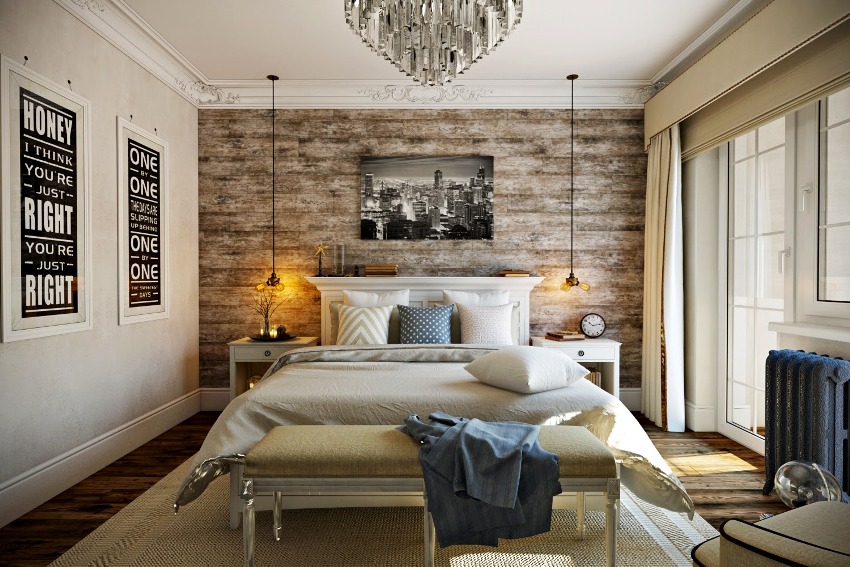 - Loft. The brutal and daring interior is perfect for decorating a bedroom. Preference is given to rough, untreated surfaces with a negligent effect. The bedroom welcomes a combination of vintage furniture and modern appliances set against a brick wall.