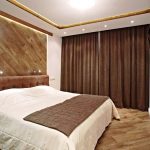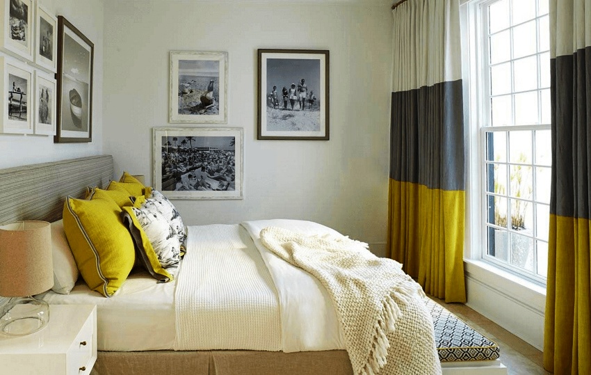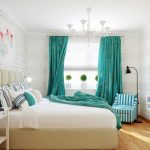 To make the interior complete and the bedroom cozy, special attention is paid to the design of the window opening. Curtains create an atmosphere of isolation and privacy in the bedroom. If you do not want to clutter up the room with voluminous curtains that take up a lot of space, you can limit yourself to the installation of Roman curtains made of dense material.