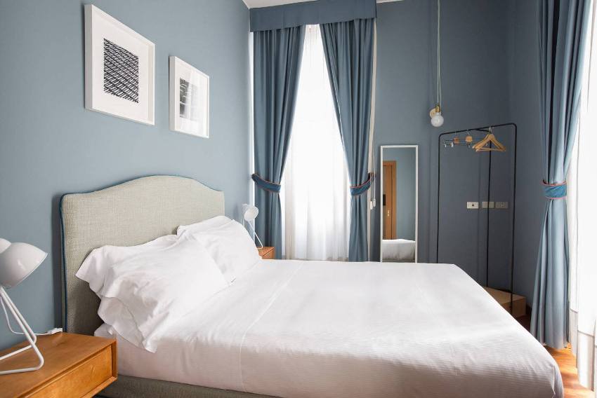 It is also recommended to use a light finish on the walls, which not only contributes to a visual increase in the area, but also has a relaxing effect on a person. The most popular colors for decorating bedroom walls are: