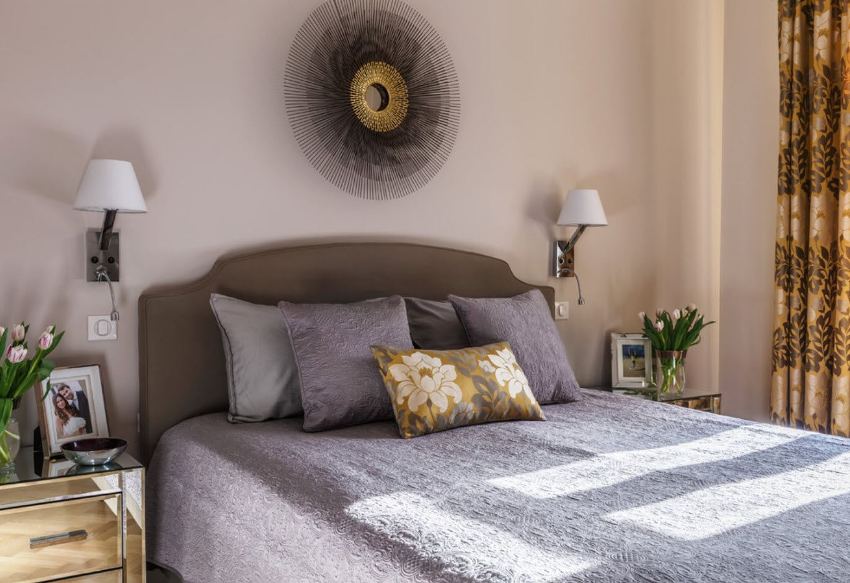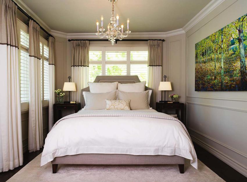 Bedroom walls 12 sq. m is better to decorate in light neutral colors, this technique will visually increase the area