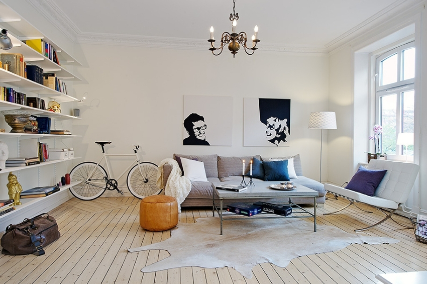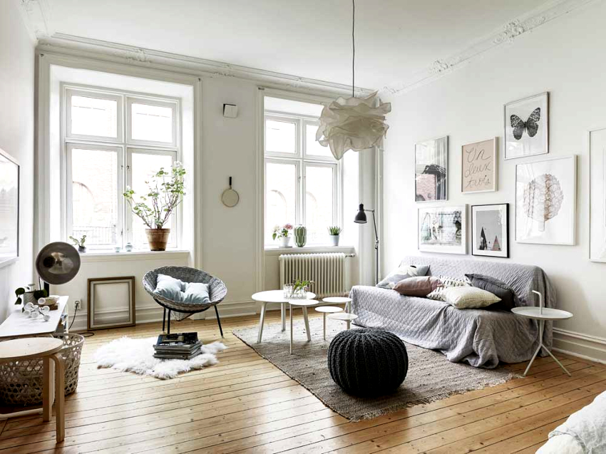 The Scandinavian-style interior does not tolerate lush decorative and textile design. To create an expressive design, a few discreet but original elements will be enough.
