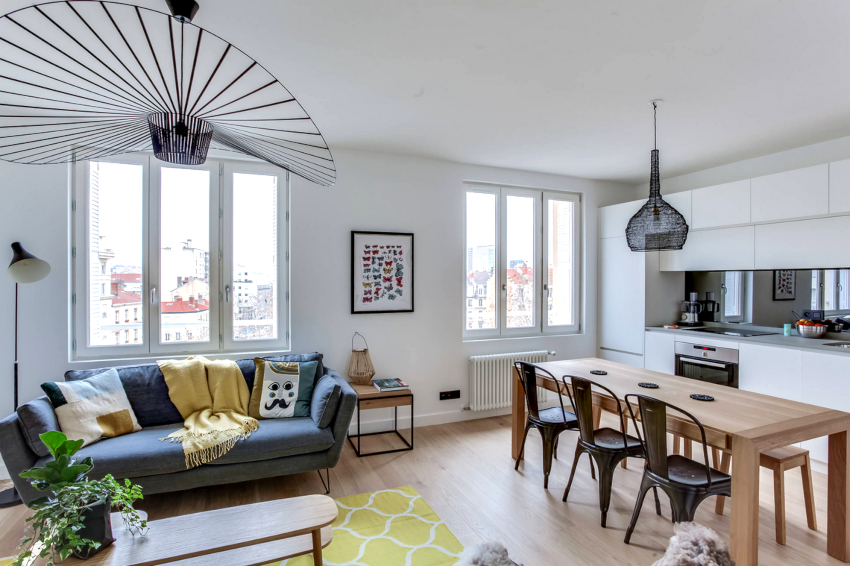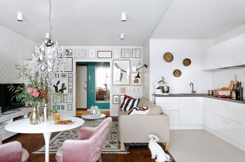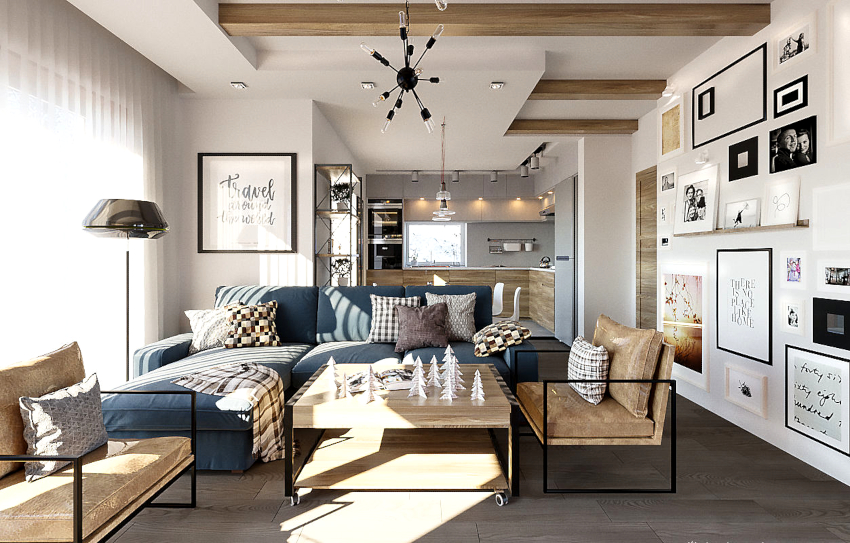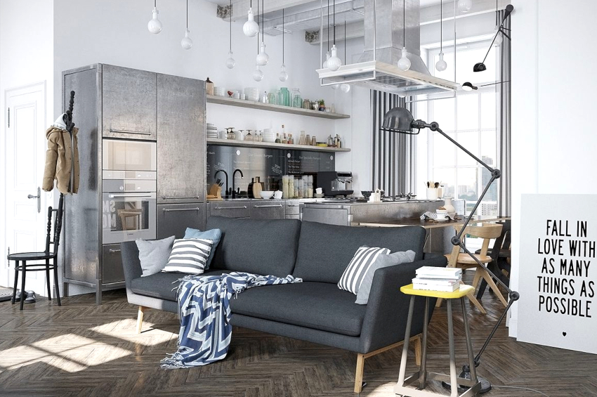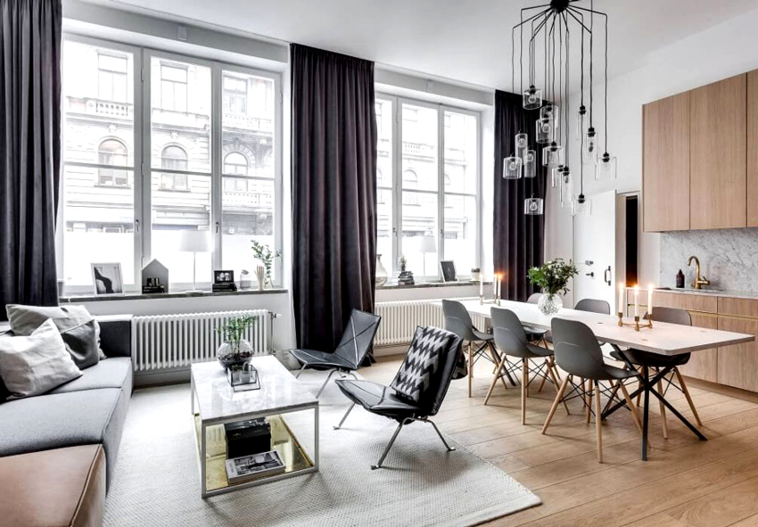 Very often in modern apartments, when renovating the living room, it is combined with the kitchen, thereby creating a spacious and bright room, divided into zones by means of design techniques. The design of the kitchen-living room in the Scandinavian style has its own characteristic features.