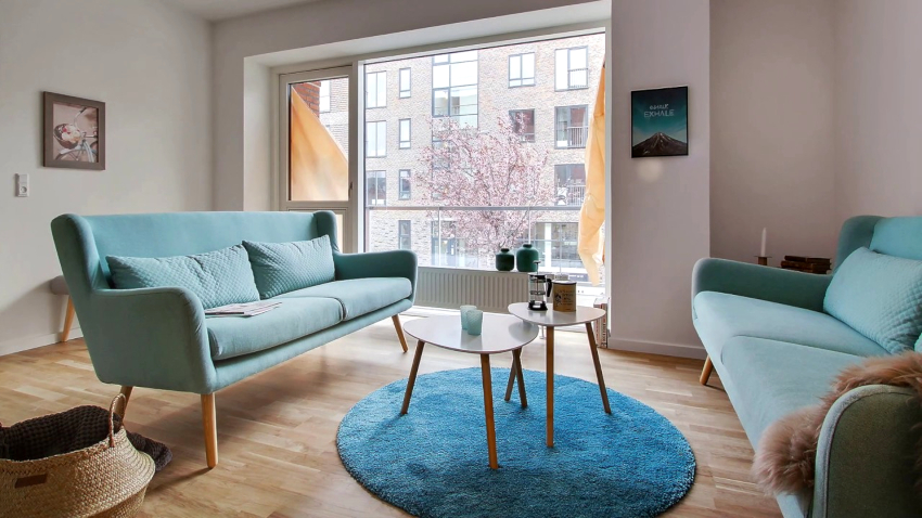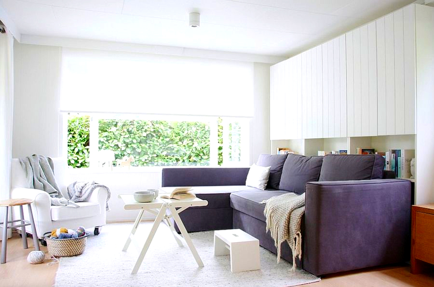 An abundance of natural and artificial light is important for a Scandinavian living room. Every corner of the room should be illuminated at any time of the day. It is not customary to hang the windows with curtains so as not to block the free access of light to the room. The frame should be light, blending in with the walls.