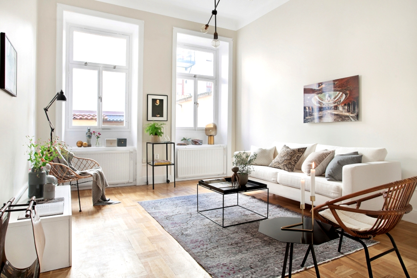 Useful advice! Products made of light rattan will harmoniously fit into the Scandinavian interior. These can be chairs, tables or poufs.