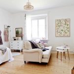 The Scandinavian-style living room-bedroom should have a minimum amount of decor. It is enough to hang a picture on one of the walls, place porcelain and metal accessories on open shelves, arrange flowerpots with indoor plants and vases with fresh flowers.