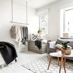 An open shelving unit, which can become a separator between functional areas, will allow you to complement the room, as shown in the photo of the minimalist living room interior. A screen made of natural fabric with a northern motif will also cope with this task, which will add a characteristic flavor to the room. Since the Scandinavian style does not like large cabinets, a chest of drawers is suitable as storage systems. A small built-in wardrobe with a glass facade will look appropriate. Crockery, books and decorative accessories can be stored on open shelves or in niches.