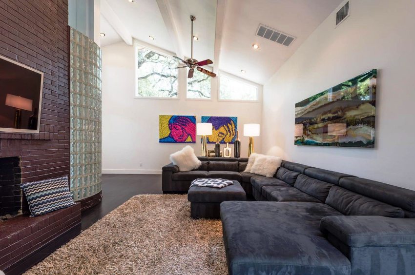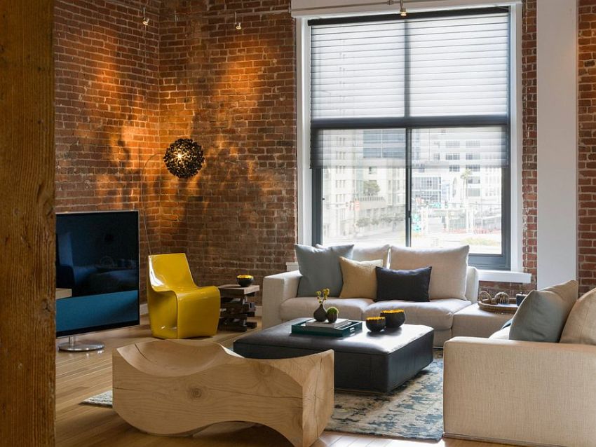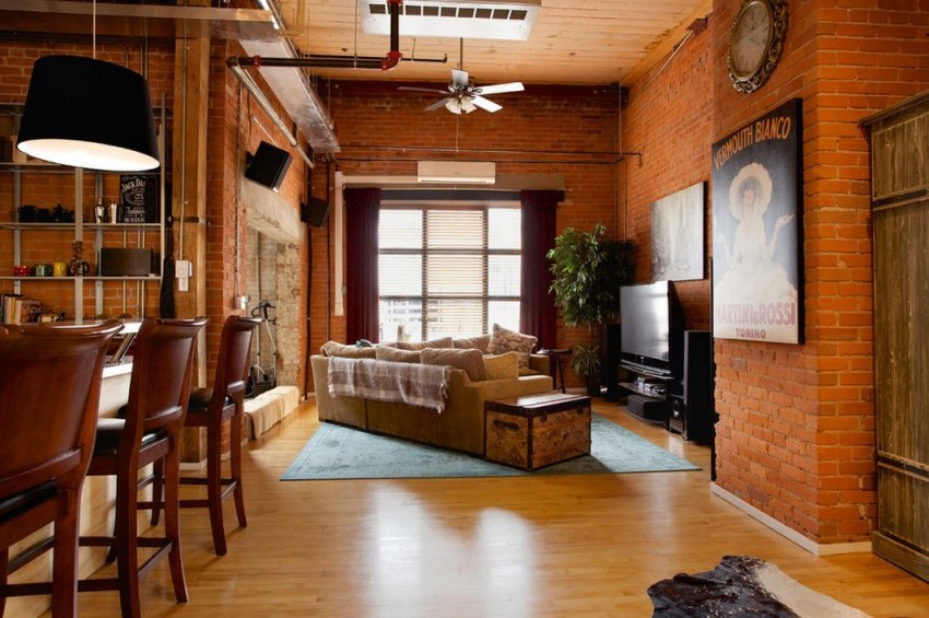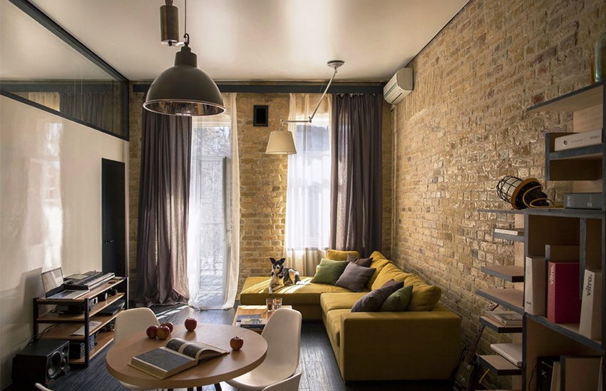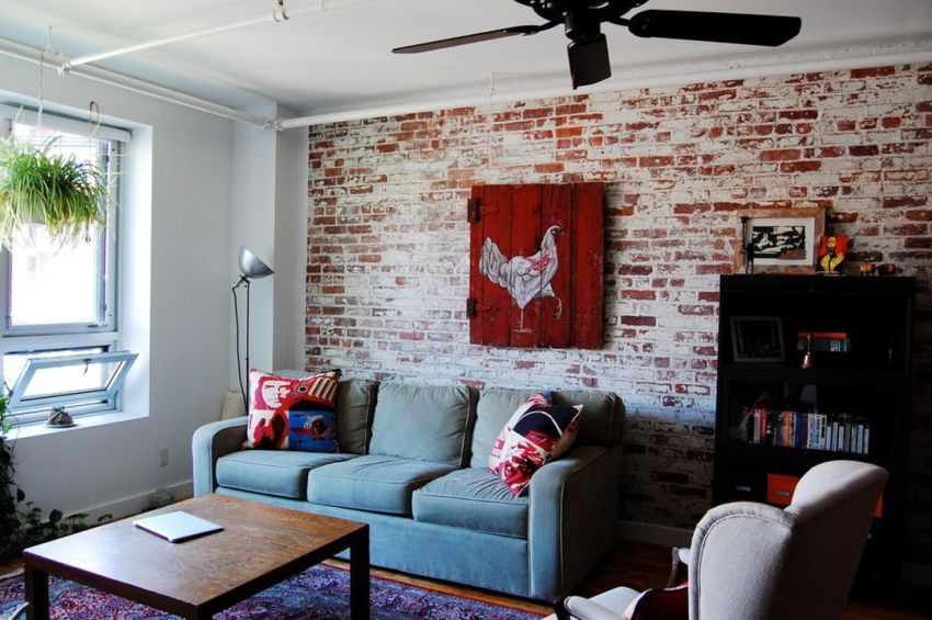 A good solution would be to use brickwork as an accent surface, which can be presented both in the natural color of the brick and in a monochromatic design. The first option involves applying an antiseptic and water-repellent coating to the surface, and the second - painting.