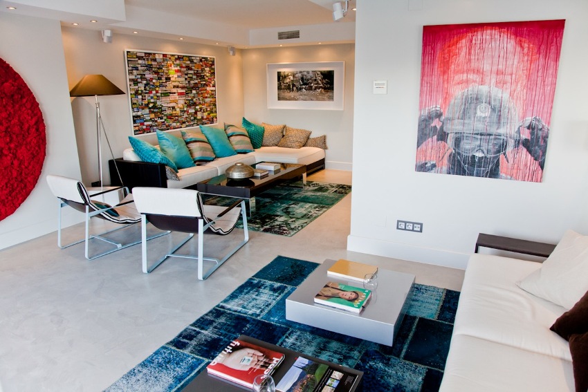 The modern style of the living room is an original mix of styles such as minimalism, modern, hi-tech, pop art and retro
