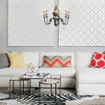 Relevant for a modern living room are wallpapers in pastel colors in a monochromatic variation or with an unusual geometric ornament. Products with a large pattern on a calm color background will look good. In addition, this print should be reflected in the upholstery and textiles of the room. Natural wallpaper based on bamboo, straw or cork looks extraordinary, but harmonious in the modern design of the hall.