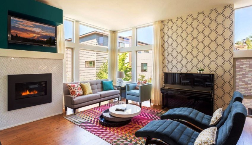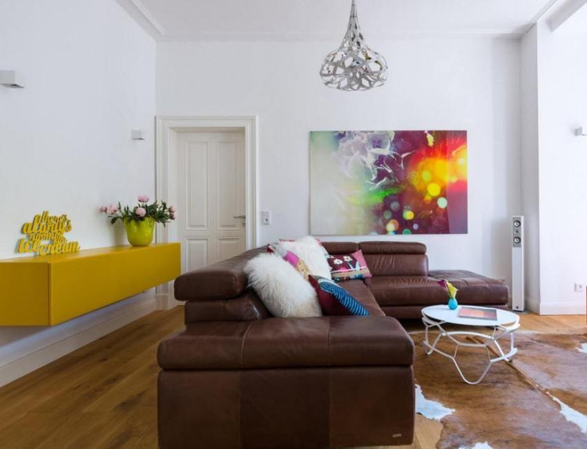 The comfort of a room directly depends on the color scheme in which it is decorated. The living room is mainly made in a modern style in light colors. Bright saturated colors are used exclusively as an accent.