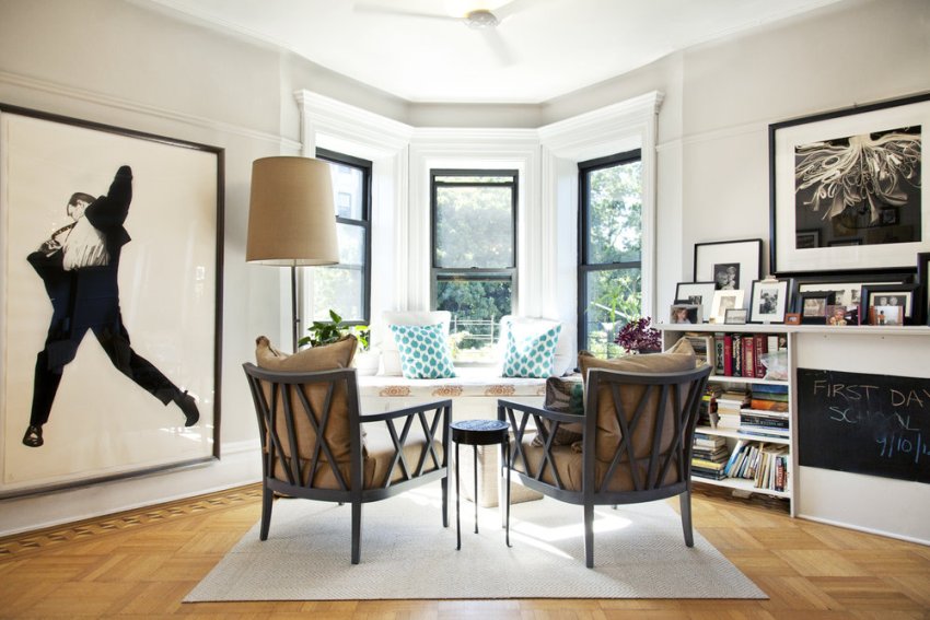 Important! Curtains with traditional floral designs will look too old-fashioned, and blinds will be boring.