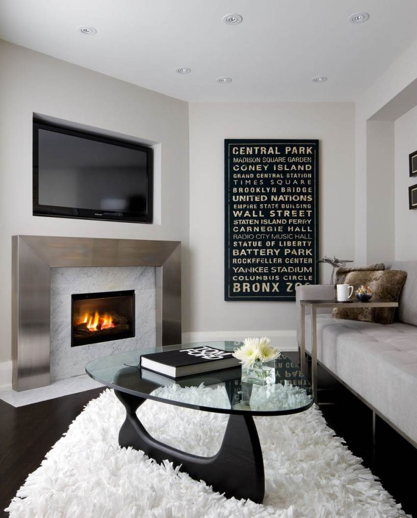 Furniture can be of any shape and can be made in different colors. However, it should be multifunctional, have a restrained design, not equipped with many decorative inserts. It is necessary that furniture in a modern living room does not overload the general space and does not take up much space. It should be as small as possible. An important element of the hall is the fireplace. Photos of interiors in modern living rooms clearly display various options for the location of the functional and aesthetic object of the room.