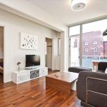Linoleum can often be found in modern living room interiors. This material is a practical and budget option. It is presented in models that imitate the structure of wood, natural stone, tiles or porcelain stoneware.