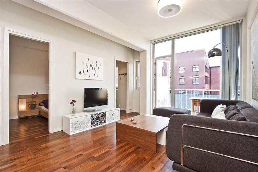 Modern furniture is suitable for interior decoration in such stylistic directions as high-tech, modern, minimalism, techno and others. It does not stand out for its luxurious design, it is devoid of decorative inserts and ornaments.However, every piece of furniture in a modern living room is distinguished by its practicality, versatility, simplicity of lines and laconic design. Different options can be seen in the photo of the interior of the living room in the style of minimalism.