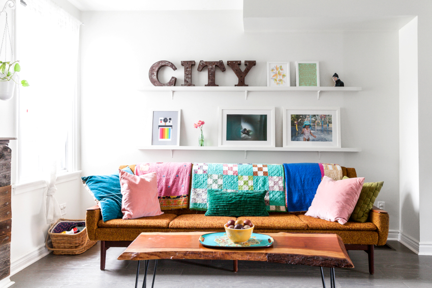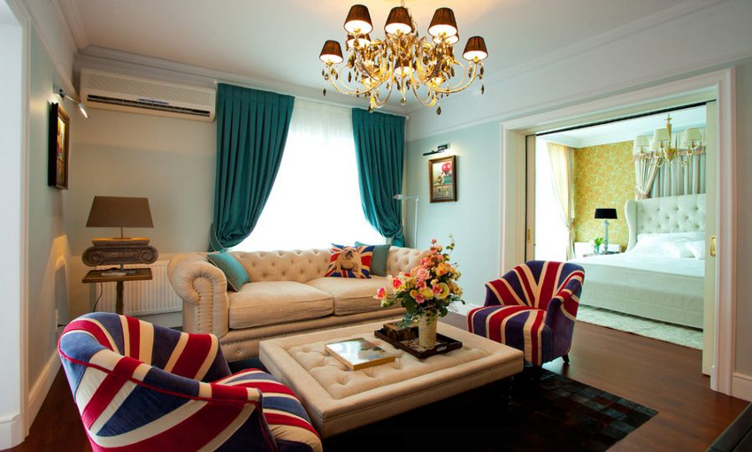 To prevent the room from turning out to be colorful, no more than 5 bright shades should be used when arranging the room