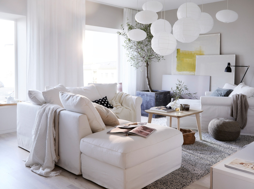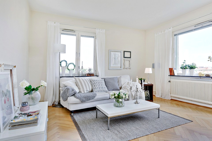 White color is able to fill the room with air and light, but it needs to be diluted with bright accessories and contrasting furniture