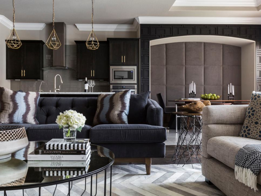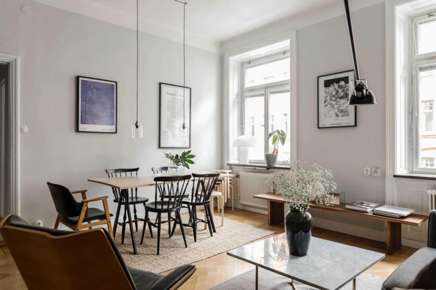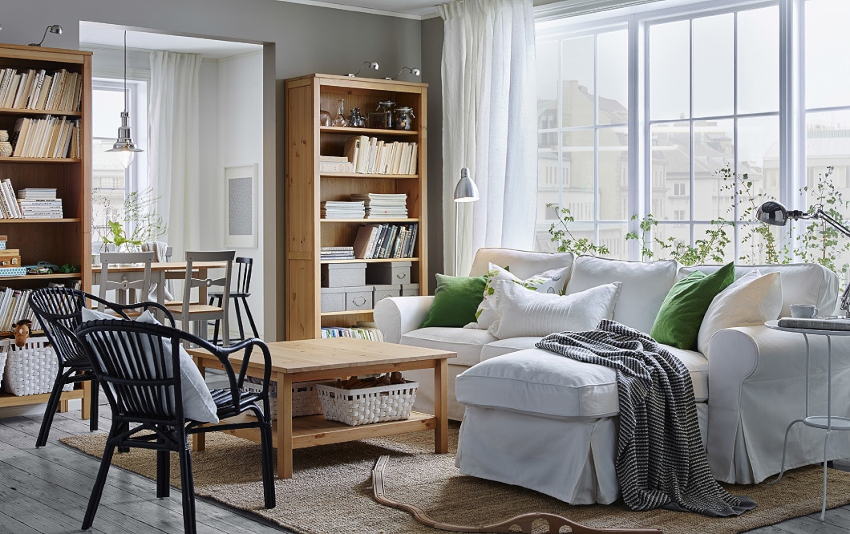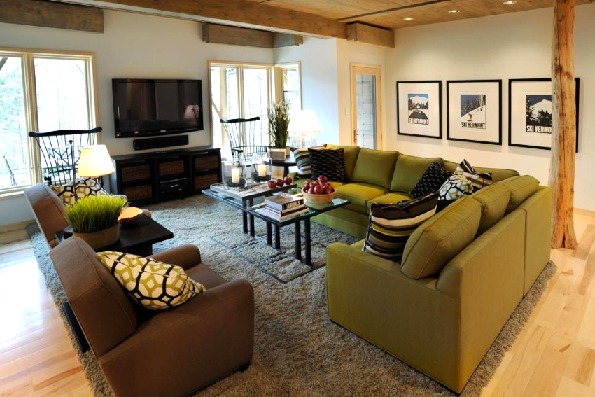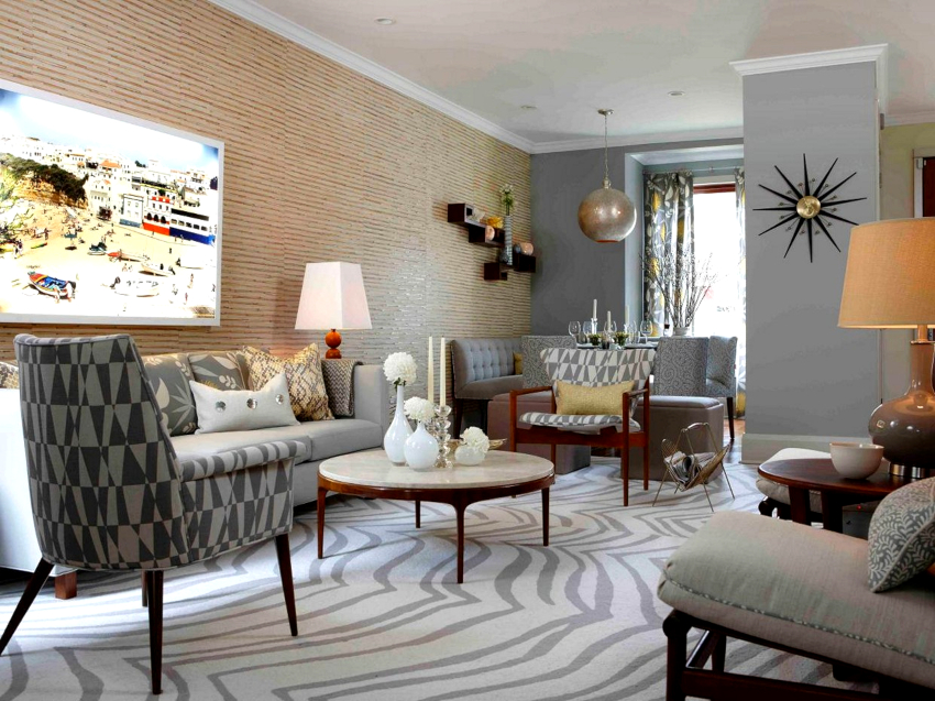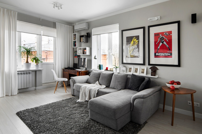 The arrangement of furniture elements in the living room is determined by its layout. In a studio apartment, the dining area is combined with a seating area. The walk-through hall can be delimited by making it more comfortable. A rectangular narrow room should be corrected using geometric techniques.