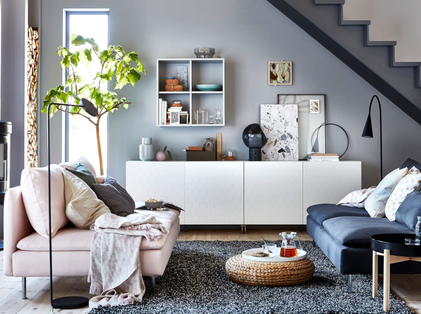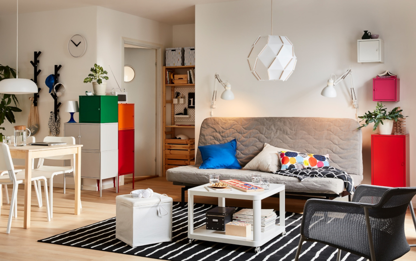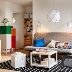 It will allow you to unload the space by organizing hidden places for storing various things. These can be built-in closed shelving, sofas and cabinets with compartments. It is advisable to install a large cabinet along one of the walls from floor to ceiling, where you can remove clothes, books, dishes, household appliances and other household items.