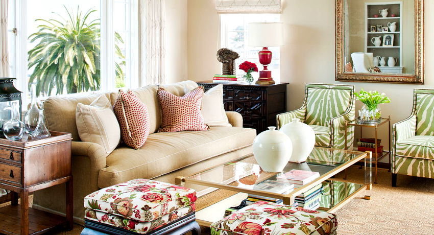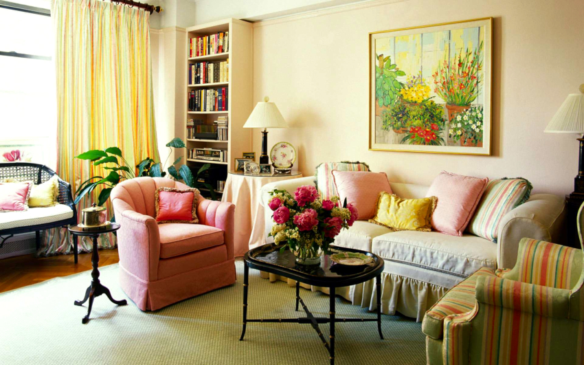 Useful advice! If the walls are decorated with a small pattern, then the textiles and furniture upholstery are selected in plain colors, and vice versa.