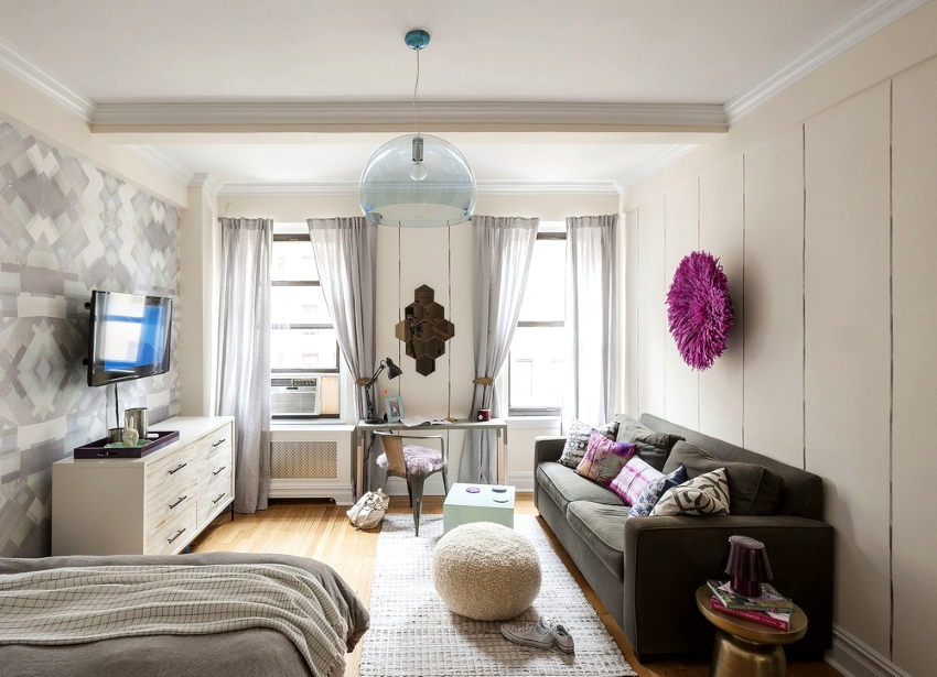 When decorating the living room-bedroom, it is important to choose the right place for the bed and the area for receiving guests