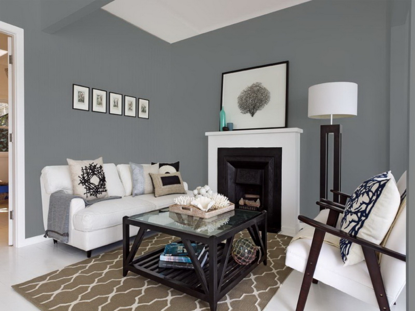 The living room looks restrained but elegant in a neutral gray tone, which is used for vertical surfaces. A silvery shade or the color of dry asphalt is appropriate here. In this case, furniture elements and decor should be selected in a darker tone. Feel free to combine warm and cold colors in a small room. The most successful combinations in the interior of a small living room are yellow-lilac, gray-pink, mint-beige, sandy-olive shades.