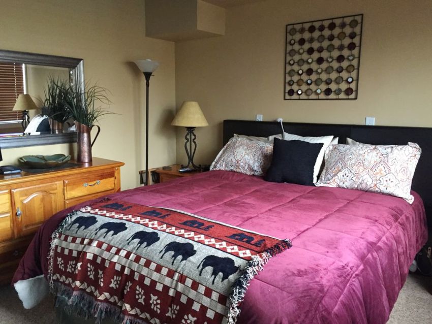 Table lamps on each side of the bed allow you to use them when needed