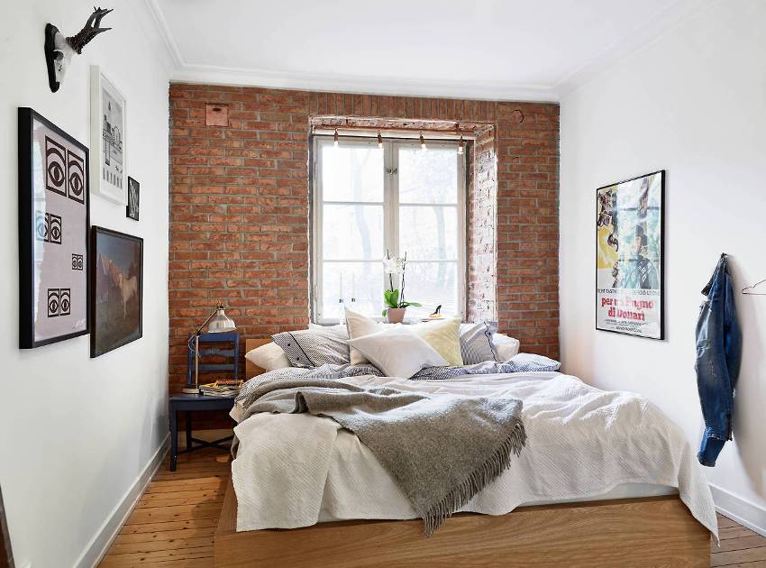 A good example of using decorative brickwork in the interior of a bedroom