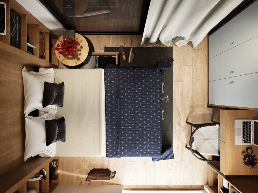 For a more informed choice, it is worth looking at photos of bedrooms in a small apartment. A photo of the design for a room of the required size will help in the selection and placement of furniture.