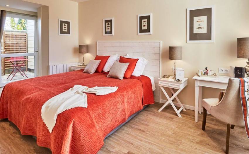 Modern bedroom with a small table for beauty treatments