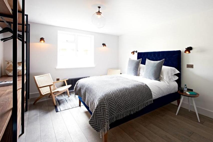 The bedroom has multi-functional lighting of separate zones