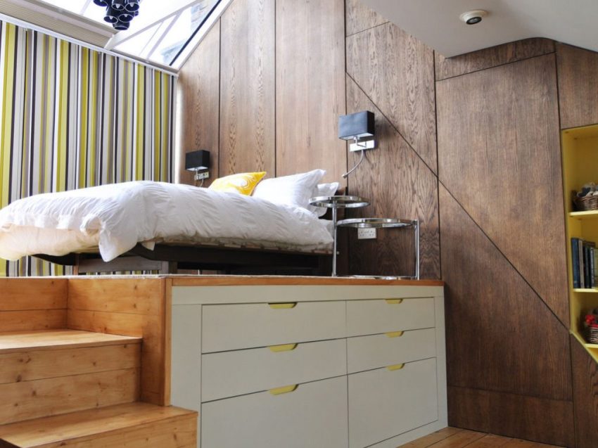 A good solution to save space in the bedroom is the use of a podium bed with drawers
