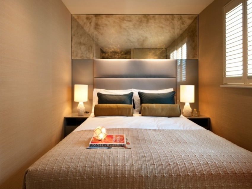 In theory, this is an area only for accommodating a double bed, but there are a lot of design ideas for a small room and this size.